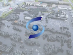 弊社の廃タイヤ中間処理工場(苫小牧、帯広、仙台)で破砕処理をした後、ゴムはボイラー用燃料として、金属ワイヤーはスクラップとして再生可能資源へ生まれ変わります。